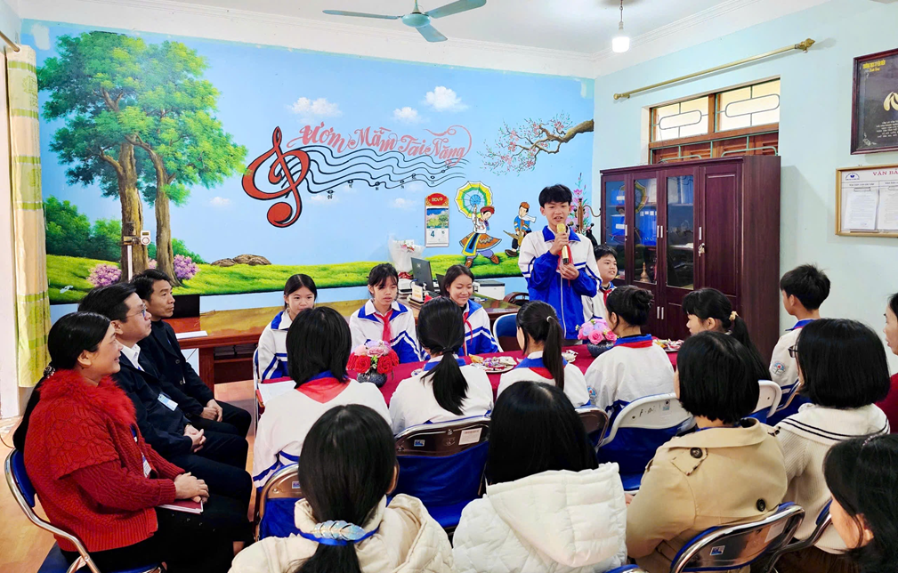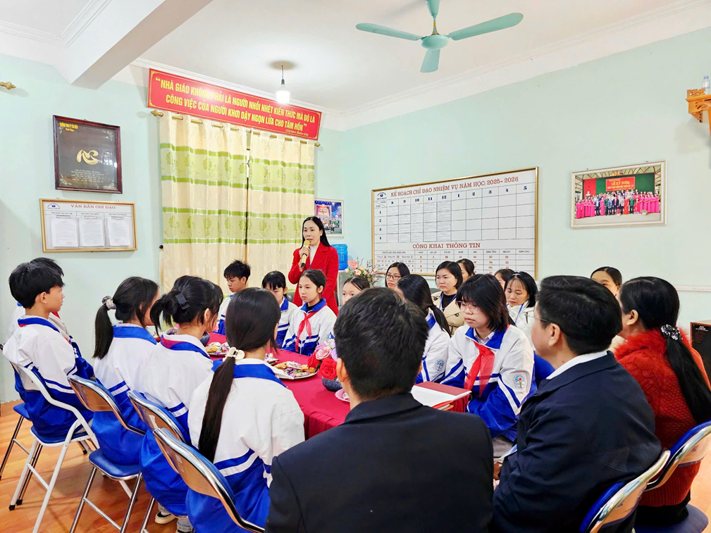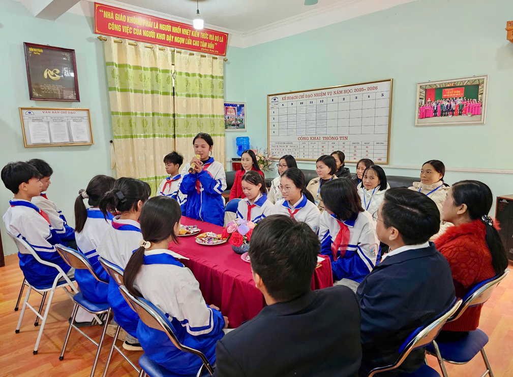 Tại buổi gặp mặt, cô Hoàng Thị Minh và thầy Đặng Quang Trường – Phó Hiệu trưởng nhà trường – đã phát biểu động viên và dặn dò các em học sinh trước thềm kỳ thi. Hai thầy cô nhấn mạnh tinh thần trách nhiệm, sự kiên trì trong học tập và mong muốn các em giữ vững bản lĩnh, tự tin thể hiện tốt nhất năng lực của mình trong kỳ thi sắp tới. Tiếp đó, cô giáo Lê Thị Ánh, giáo viên phụ trách bồi dưỡng môn Khoa học tự nhiên, thay mặt cho các thầy cô giáo ôn luyện cũng gửi tới đội tuyển những lời nhắn nhủ chân thành: giữ tinh thần thoải mái, ôn tập khoa học và tin tưởng vào khả năng của chính mình. Những lời động viên của Ban Giám hiệu và các thầy cô đã tiếp thêm động lực để các em tự tin bước vào kỳ thi quan trọng phía trước.