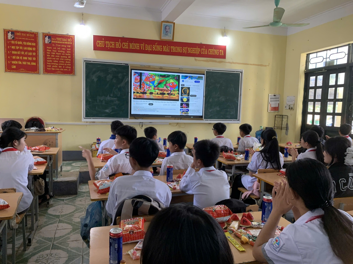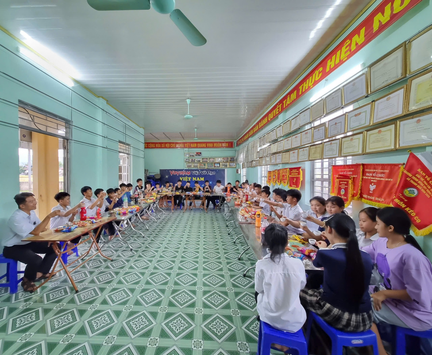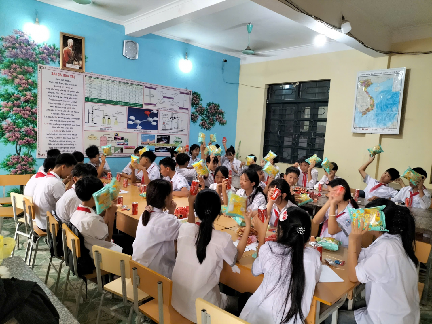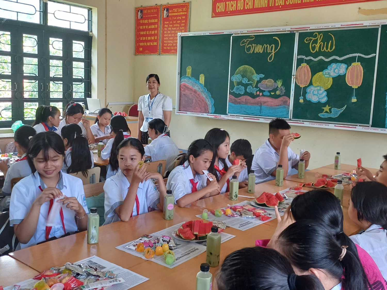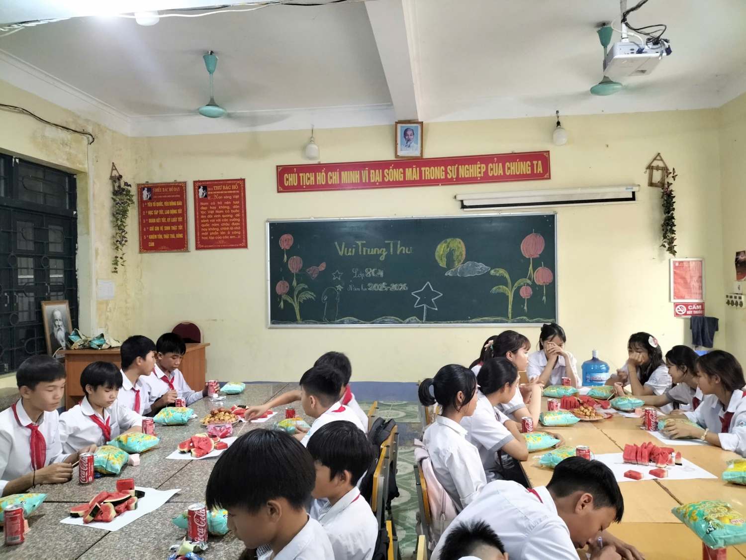 Tại đây, các em học sinh đã cùng nhau tổ chức "phá cỗ" với bánh kẹo, hoa quả do nhà trường và phụ huynh chuẩn bị. Nhiều tiết mục văn nghệ "cây nhà lá vườn" đặc sắc như hát, múa, kể chuyện... đã được trình diễn, tạo nên một không gian giao lưu gần gũi và thân tình. Các em cũng đã nhận được những phần quà từ nhà trường, mang lại niềm vui và sự khích lệ lớn lao. Hoạt động tại lớp không chỉ giúp các em có những giây phút thư giãn mà còn thắt chặt thêm tình đoàn kết, gắn bó giữa các thành viên.