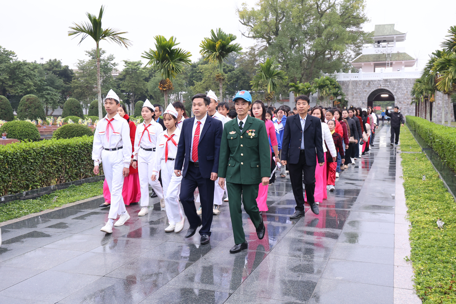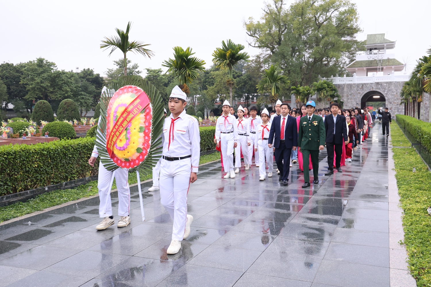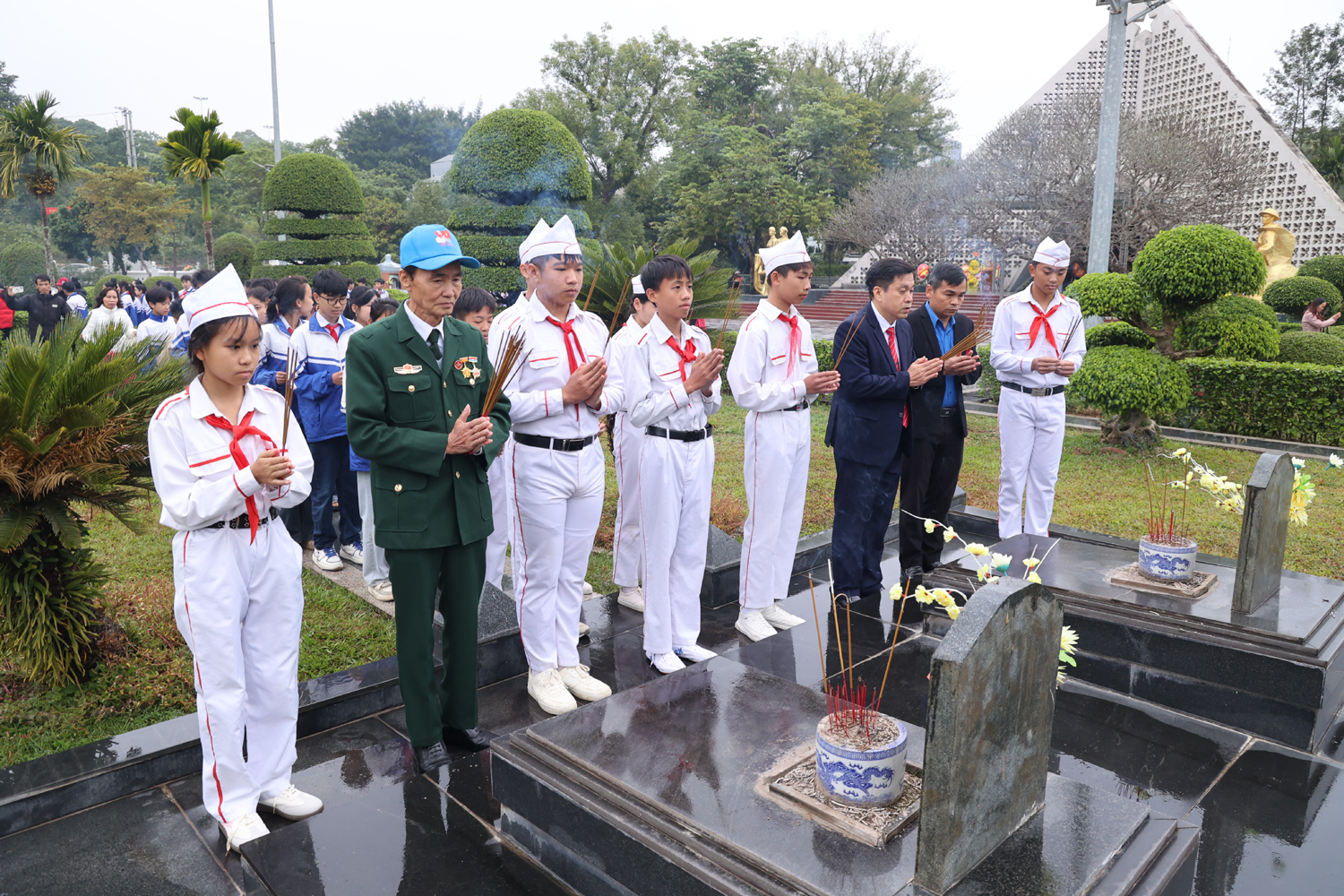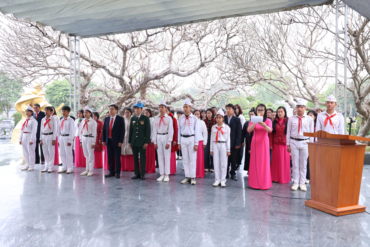 7h30 phút đoàn đã tổ chức Lễ dâng hương tại Nghĩa trang Liệt sĩ Quốc gia A1. Trong không khí trang nghiêm, thầy trò nhà trường đã bày tỏ lòng biết ơn vô hạn đối với các anh hùng liệt sĩ - những người đã không tiếc máu xương, anh dũng hy sinh vì nền độc lập dân tộc, vì hạnh phúc nhân dân. Trong không khí trang nghiêm, các thầy cô giáo các bậc phụ huynh và các em học sinh đã dành phút mặc niệm tưởng nhớ công ơn to lớn của các anh hùng liệt sĩ. Đây là hoạt động thường niên thể hiện truyền thống “Uống nước nhớ nguồn”, tri ân của các thầy cô giáo và các em học sinh đối với các anh hùng liệt sỹ đã anh dũng hy sinh vì sự nghiệp xây dựng và bảo vệ Tổ quốc; đồng thời thông qua hoạt động này nhằm giáo dục truyền thống yêu nước cho các em học sinh trong nhà trường.
