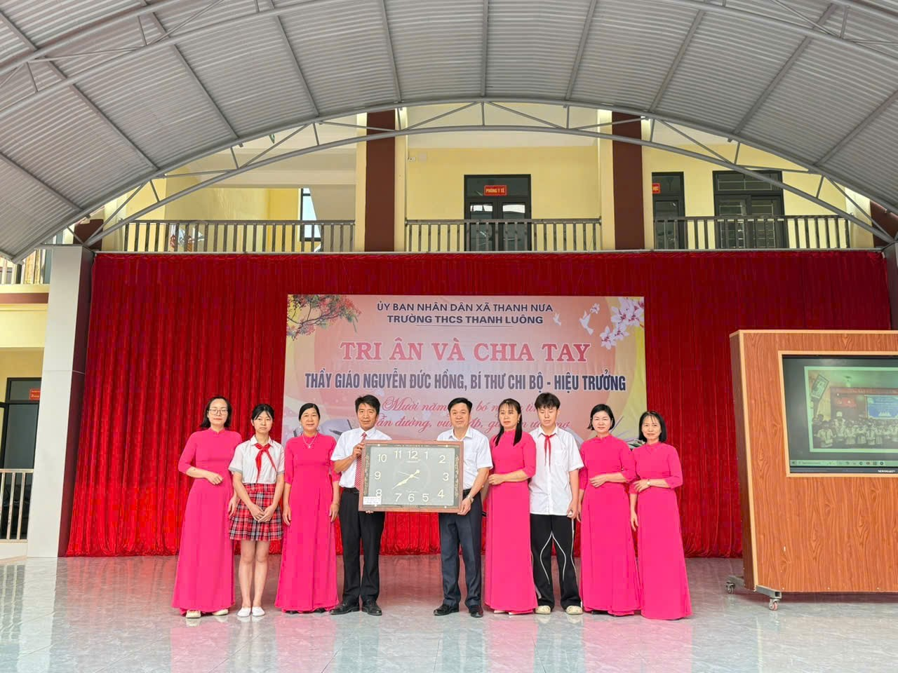 Có những cuộc gặp gỡ trong cuộc đời trở thành duyên lành, và cũng có những cuộc chia tay để lại trong lòng mỗi người thật nhiều cảm xúc. Hôm nay, trong khoảnh khắc đầy lưu luyến, tập thể cán bộ, giáo viên, nhân viên và học sinh trường THCS Thanh Luông xin được gửi tới đồng chí Nguyễn Đức Hồng – Bí thư Chi bộ, Hiệu trưởng nhà trường lời tri ân chân thành và sâu sắc nhất khi thầy nhận nhiệm vụ công tác mới theo sự phân công của tổ chức.
