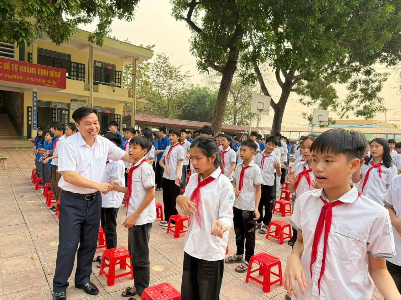 Thầy giáo ân cần dặn dò trước khi chia tay các em học sinh để sang đơn vị mới